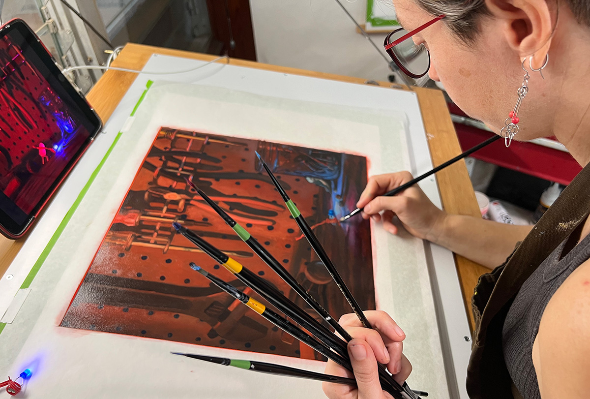 |  | The process behind each image is quite laborious. First the stories are sketched, out and words are jotted down. My team at Candlewick then helps me refine the story and get the composition of each page just right. When everything is set, I use the sketches as a guide to create photographs with the right level of detail so I can make the paintings. This is an almost cinematic process where tiny props are created and sourced. I have to scout locations and coordinate models so that I can get a photograph that gives me what I need. Sometimes I even have to composite multiple images together.